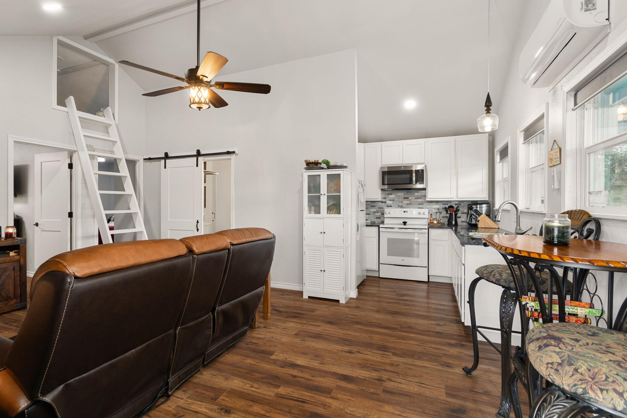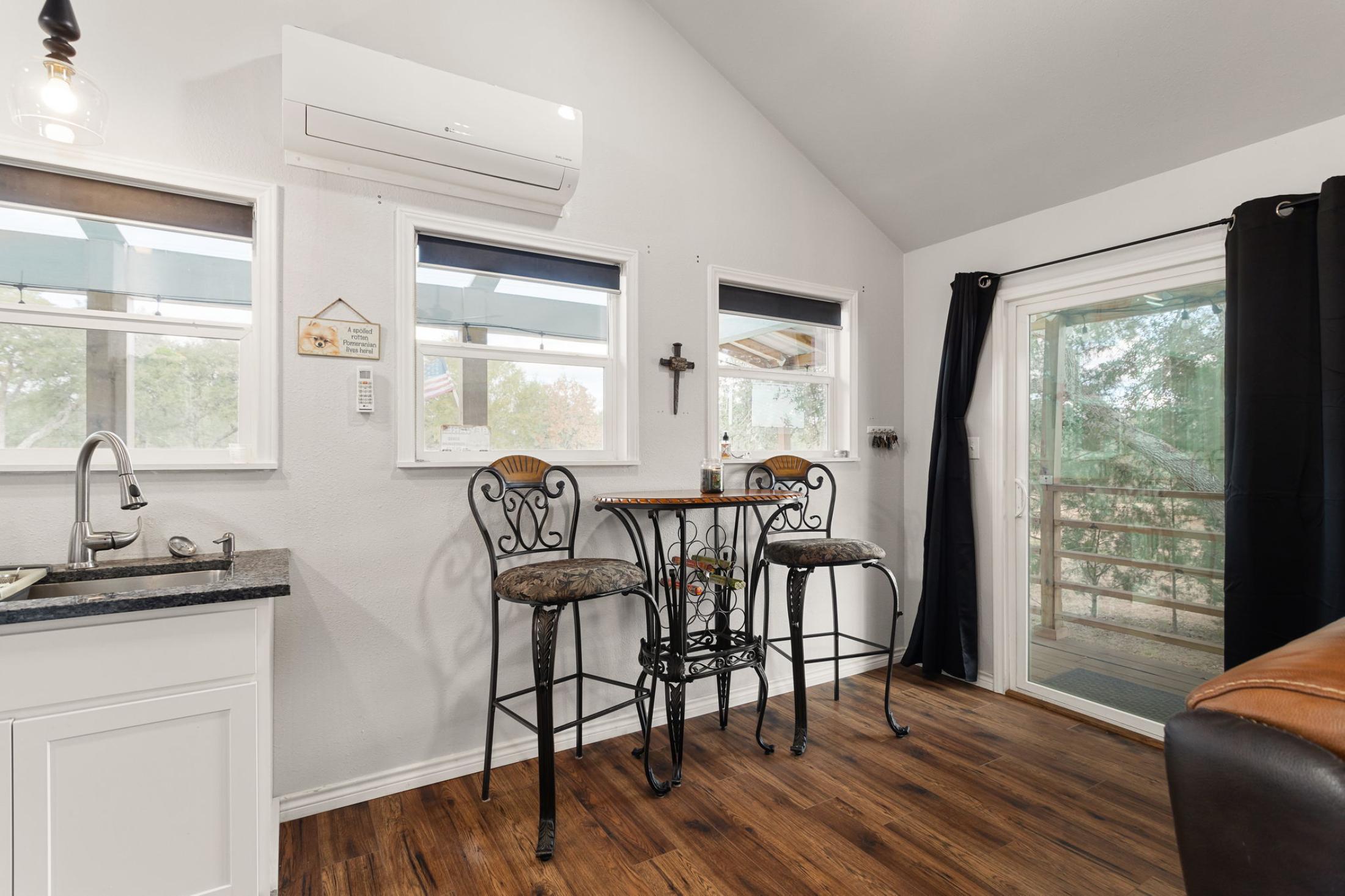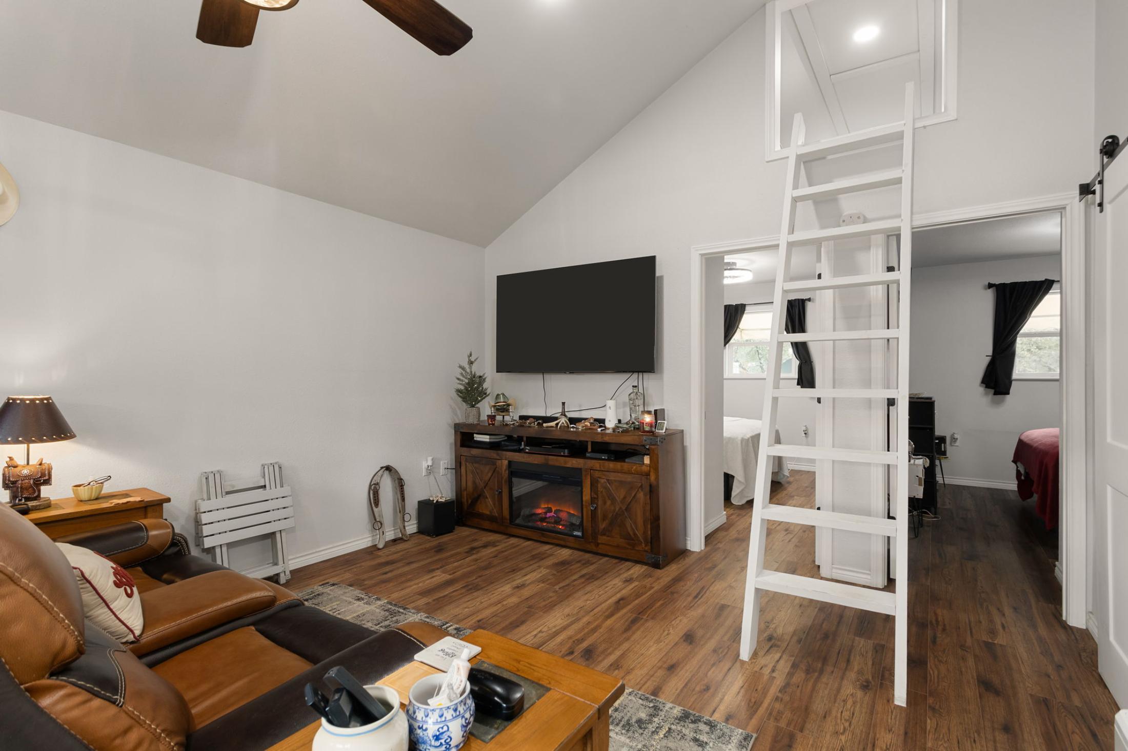 | Welcome to 185 Yaupon, Sheridan, Texas! This newly constructed home sits on approximately half an acre and is only 3.3 miles from Splashway Waterpark! Perfect for a vacation home or short-term rental, this charming 2-bedroom, 1-bath home includes a loft for additional sleeping space and a spacious open-concept living area. The kitchen includes granite countertops, appliances, and plenty of storage space. The vaulted ceiling and windows give the home a spacious feel. Additional features include vinyl flooring and ceiling fans throughout, as well as a stacked laundry center. The covered front porch beckons you to relax and unwind. Step outside and you will find a detached 3-car carport to keep your vehicles out of the weather. Less than a mile away, residents have access to Crooked Creek Lake. Enjoy a day full of fun swimming, walking trails, or kayaking! The inclusion of all furniture is negotiable. |