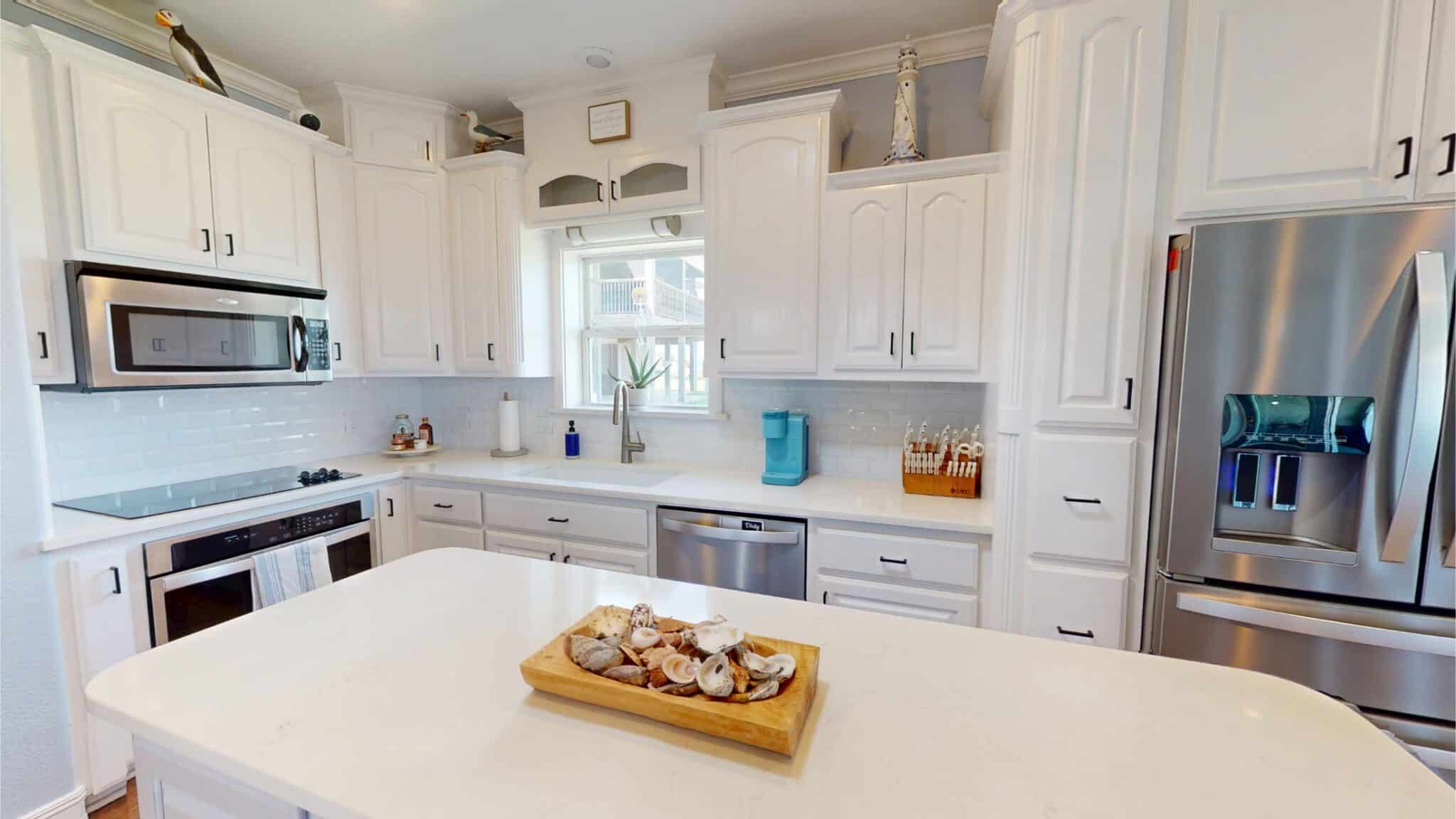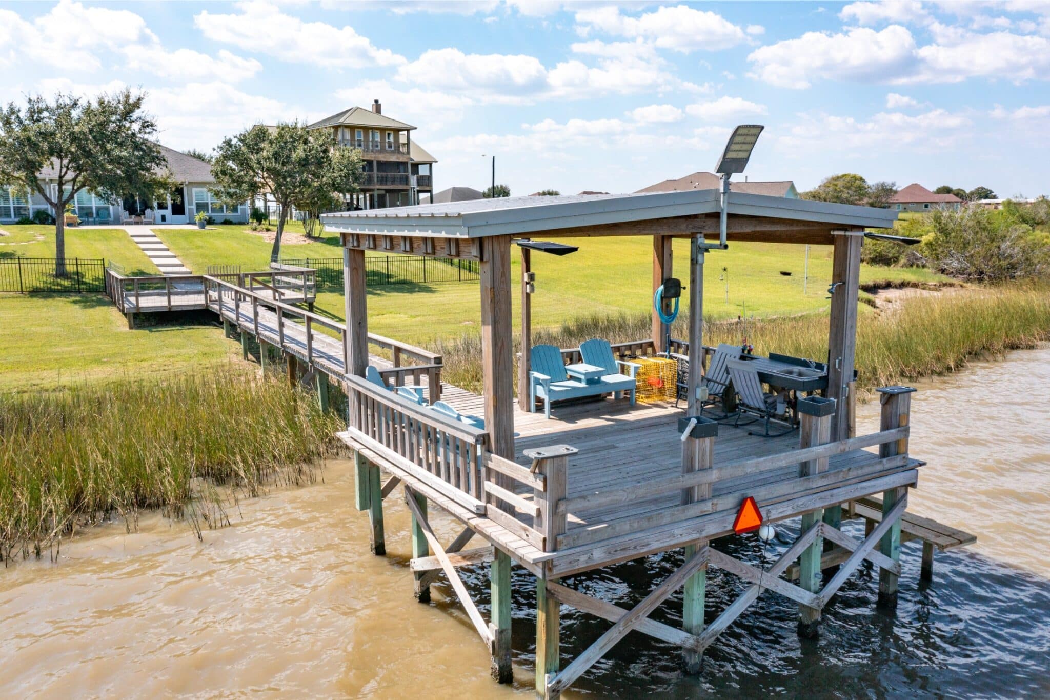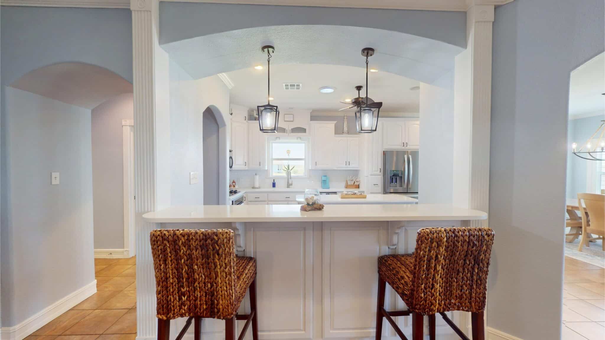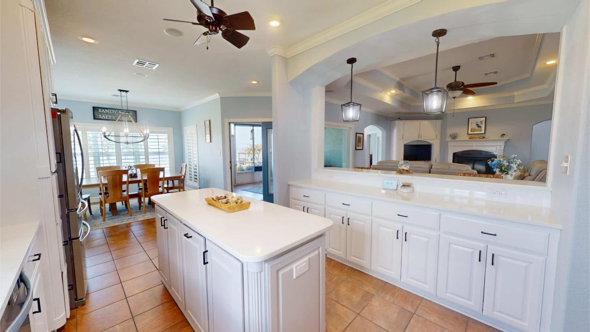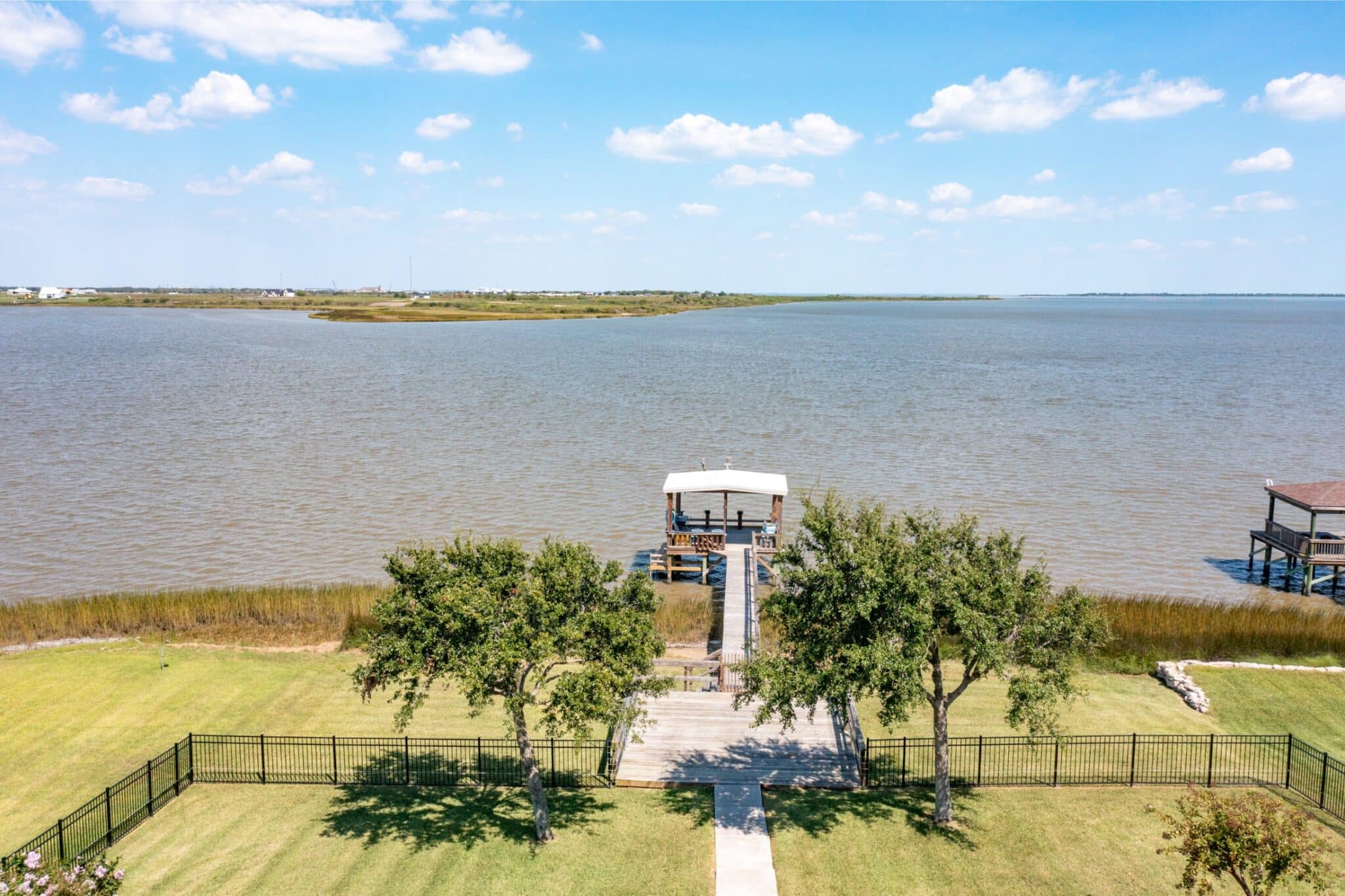 Enjoy sweeping views of Chocolate Bay from the comfort of the screened-in back porch, an ideal spot to sip your morning coffee or unwind in the evening. Step outside to a large back patio, perfectly suited for hosting gatherings or simply enjoying the fresh coastal breeze. The kitchen is a chef’s dream, boasting elegant quartz countertops, while the bathrooms feature luxurious granite countertops, adding a touch of sophistication throughout the home. For fishing enthusiasts, the private covered pier comes equipped with electricity and water, making it easy to spend long, enjoyable days by the water. Additional features include: