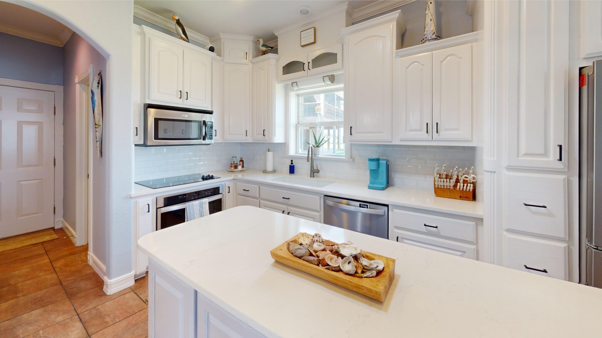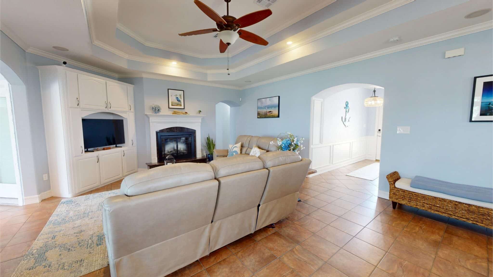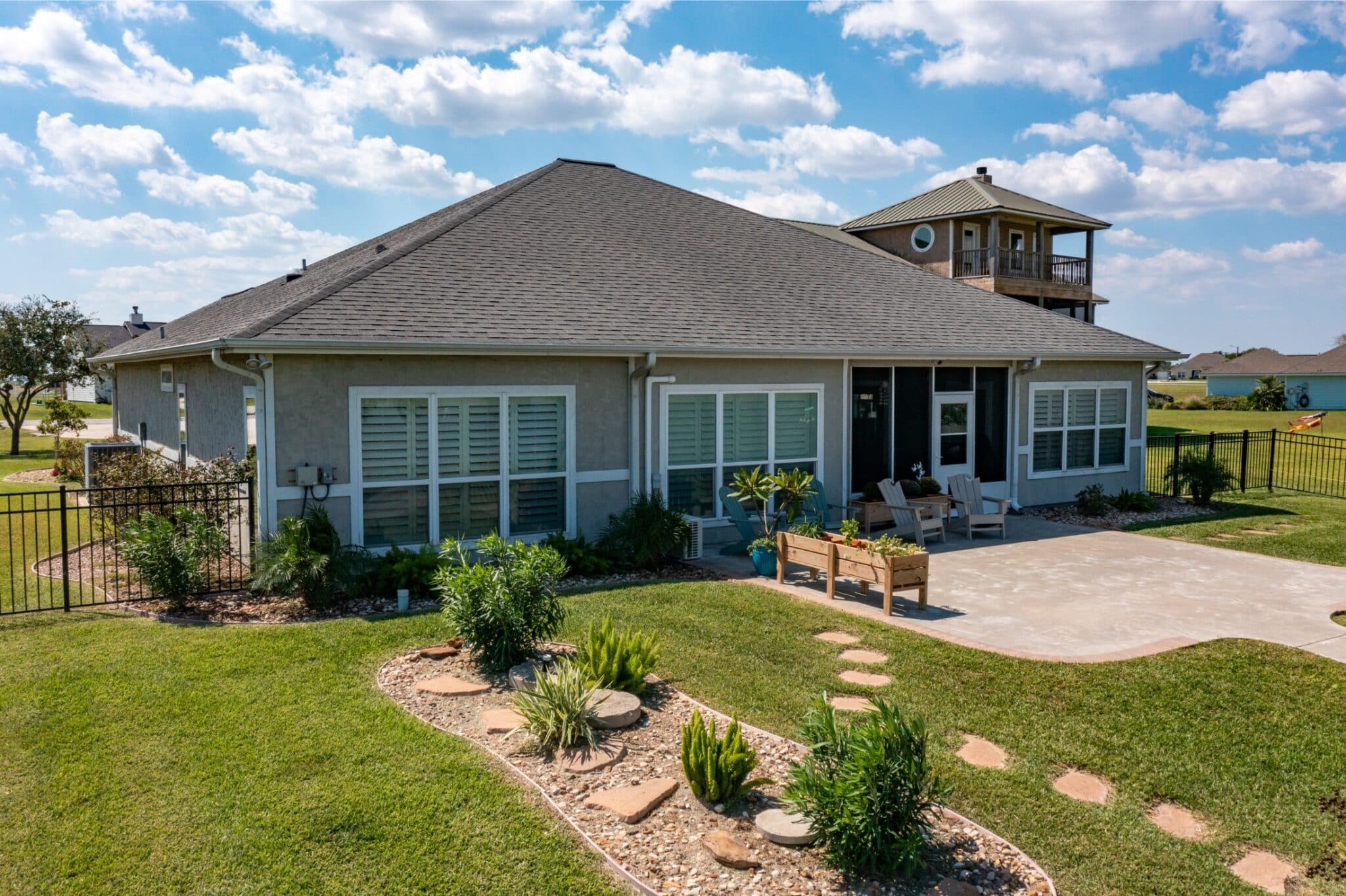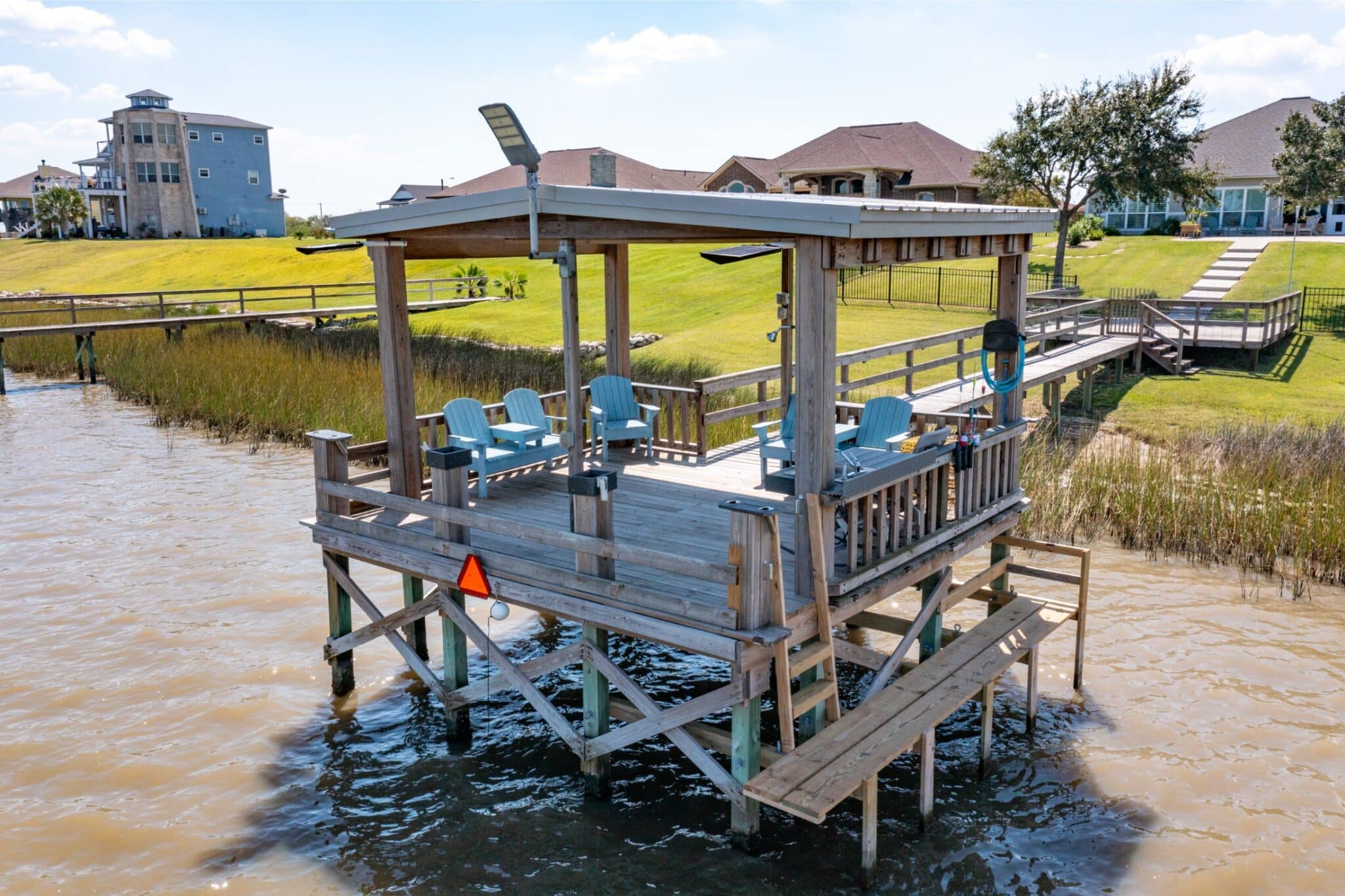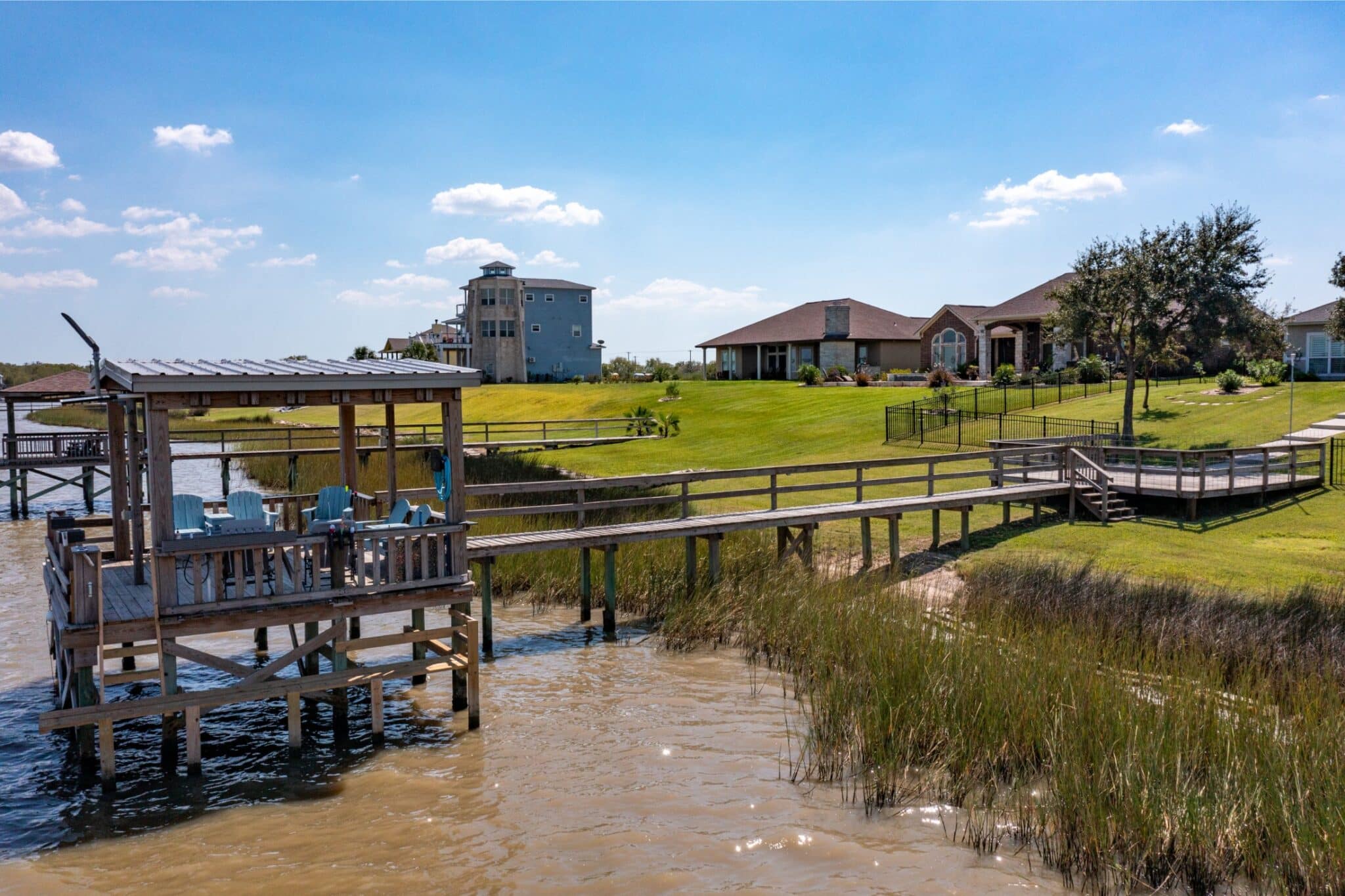 Enjoy sweeping views of Chocolate Bay from the comfort of the screened-in back porch, an ideal spot to sip your morning coffee or unwind in the evening. Step outside to a large back patio, perfectly suited for hosting gatherings or simply enjoying the fresh coastal breeze. The kitchen is a chef’s dream, boasting elegant quartz countertops, while the bathrooms feature luxurious granite countertops, adding a touch of sophistication throughout the home. For fishing enthusiasts, the private covered pier comes equipped with electricity and water, making it easy to spend long, enjoyable days by the water. Additional features include: