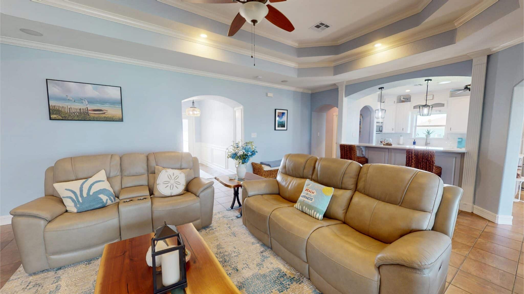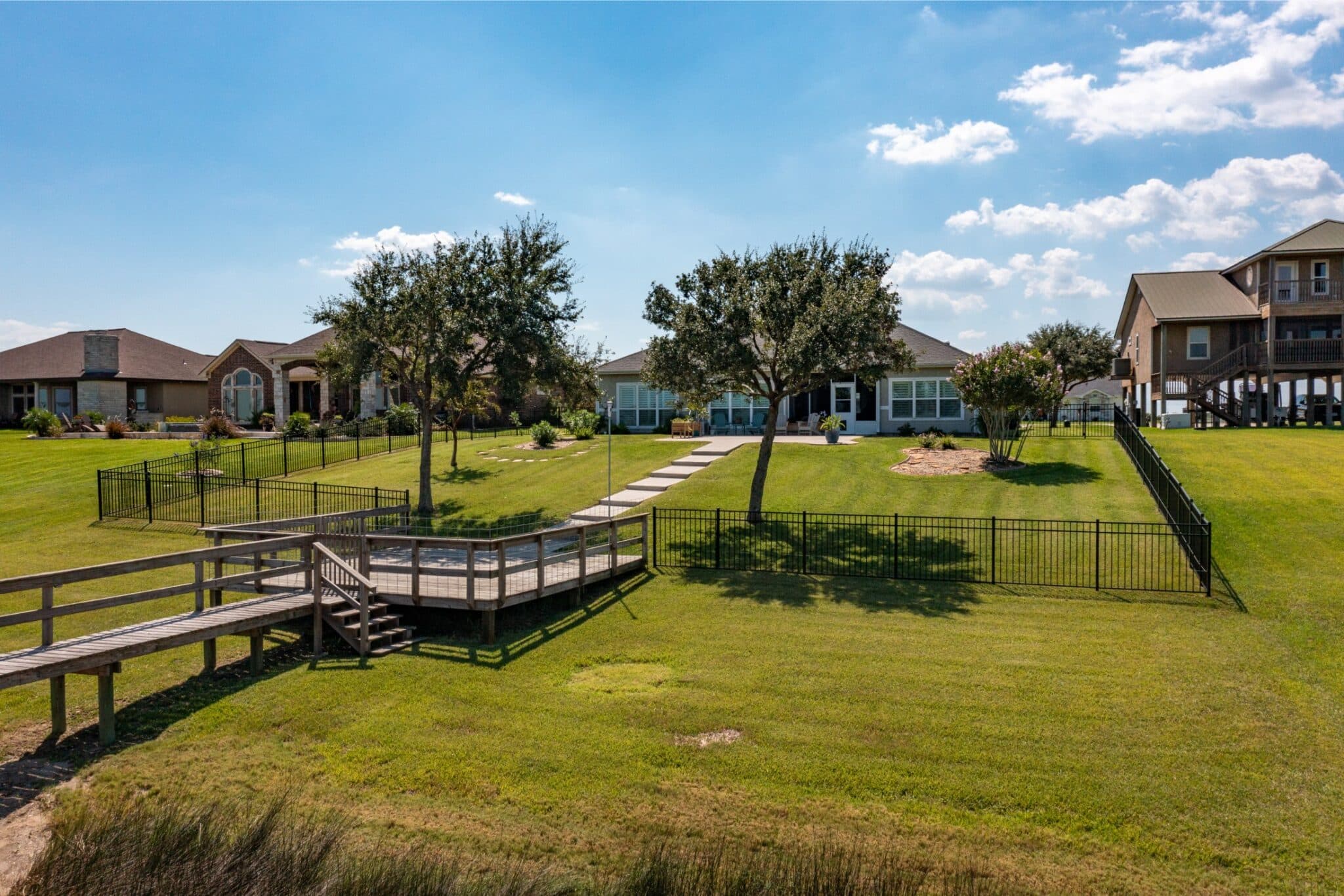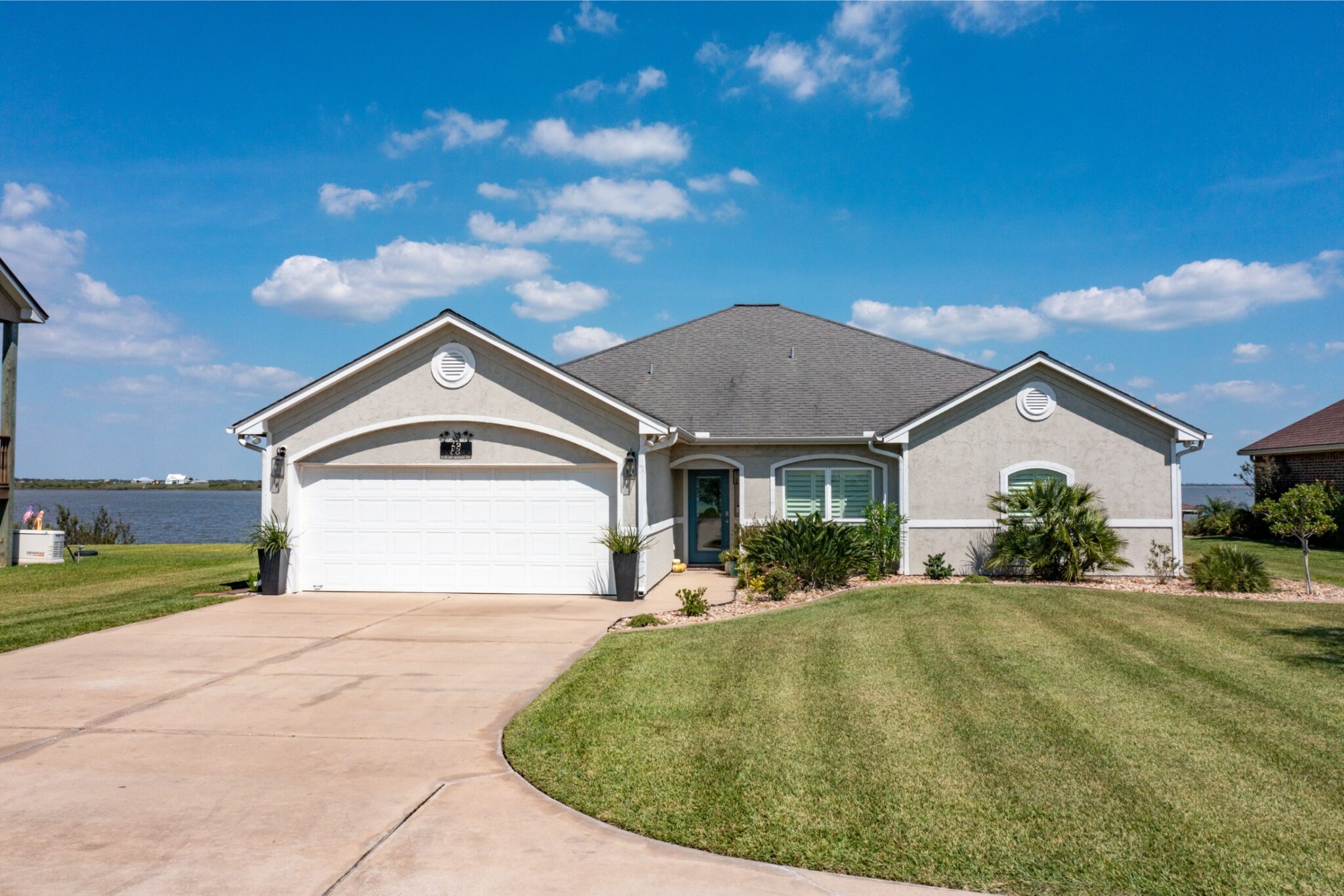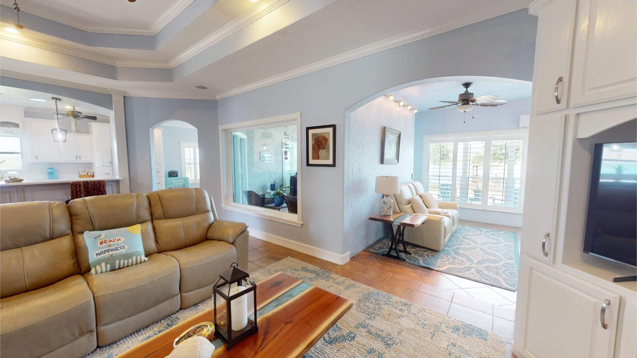 Escape to a Waterfront Paradise on Chocolate Bay. Nestled on a spacious half-acre lot, this beautifully designed, open-concept home offers the ultimate in relaxed coastal living. Featuring a thoughtful split-bedroom floor plan, the layout provides privacy while keeping the main living areas open and inviting—perfect for both everyday living and entertaining.