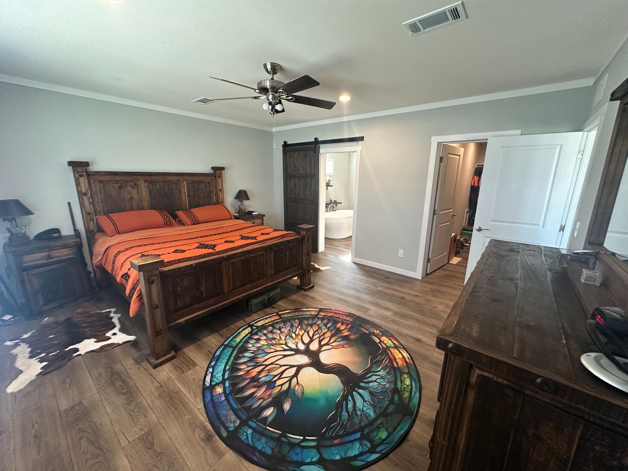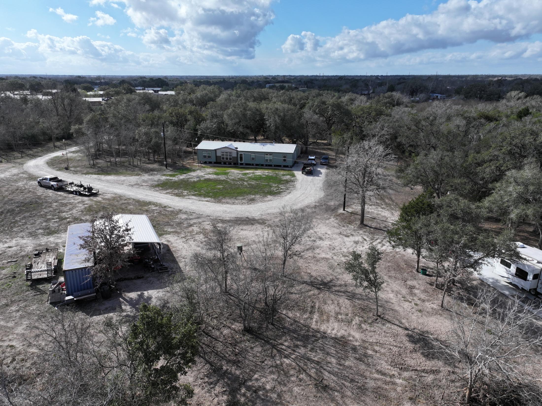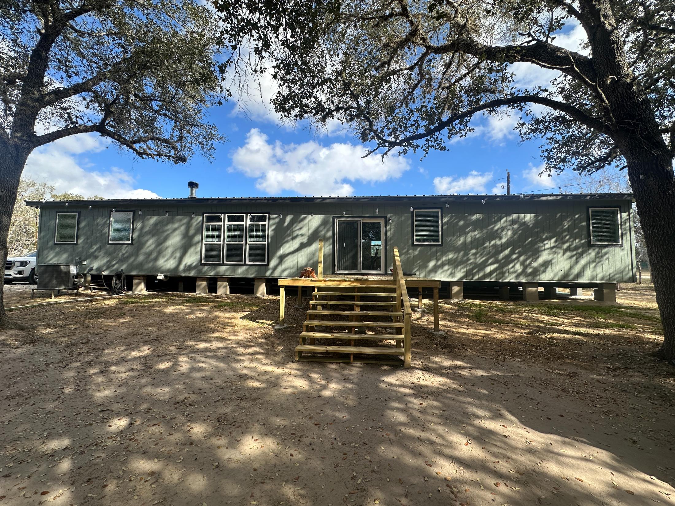 Located in the county yet serviced by city water and city sewer, this property offers the perfect blend of a peaceful country setting with the convenience of being just minutes from town. This spacious residence offers 4 bedrooms, 3 bathrooms, two living areas, and a large laundry room, providing ample room for family living and entertaining. The property is beautifully enhanced by mature, breathtaking live oak trees that create a peaceful, shaded setting throughout the backyard and surrounding grounds. Interior highlights include quartz countertops throughout, an electric range, and a built-in microwave, blending modern convenience with timeless appeal. Access to the home is convenient and well-maintained, with the private road built using approximately 17 loads of base, ensuring durability and year-round accessibility. In addition to city utilities, the property is equipped with Spectrum high-speed internet, offering dependable connectivity for work and daily living. Outdoors, the land is fully enclosed with net wire fencing topped with a strand of barbed wire and is divided into three cross-fenced pastures, making it ideal for livestock or agricultural use. A separate electric meter with camper hookup adds versatility for guests or recreational use. Additional improvements include a storage building for lawn equipment and tools, as well as a wooden back deck—perfect for relaxing or entertaining while enjoying the scenic views. The owner applied for an home & agricultural exemption in February 2026, helping establish future tax benefits. This property offers a rare combination of modern living, usable acreage, and natural beauty—delivering a true country feel while remaining conveniently close to town.
