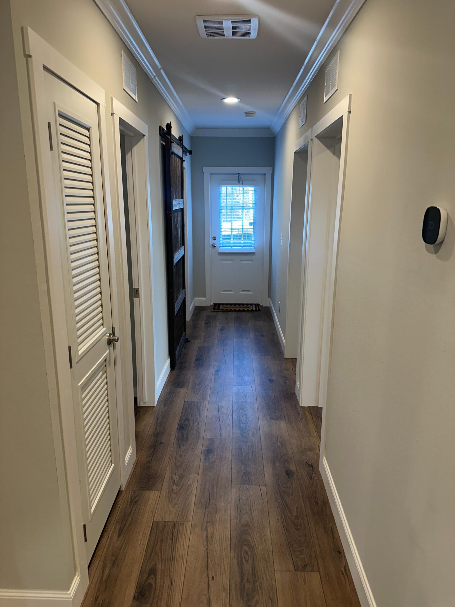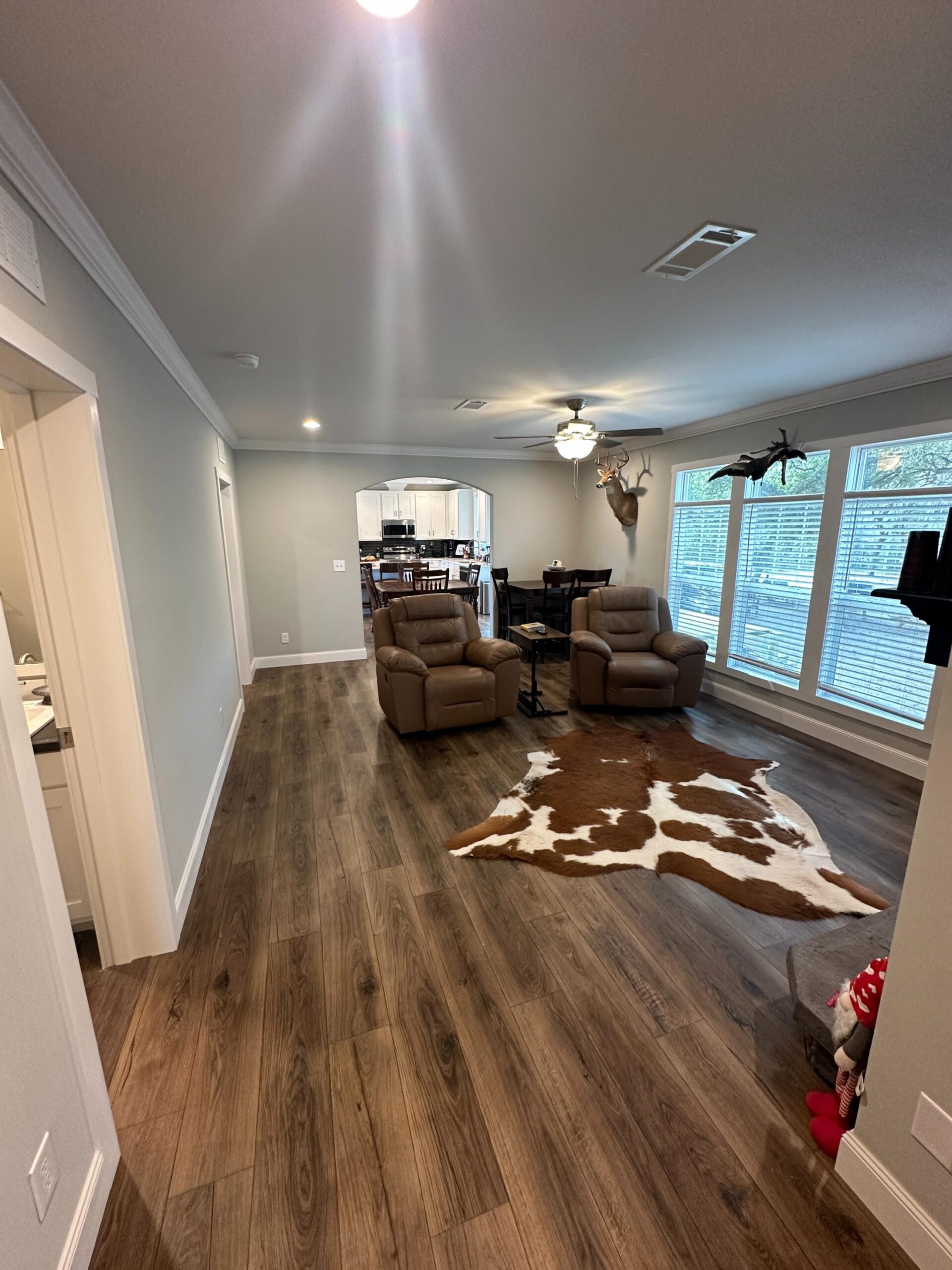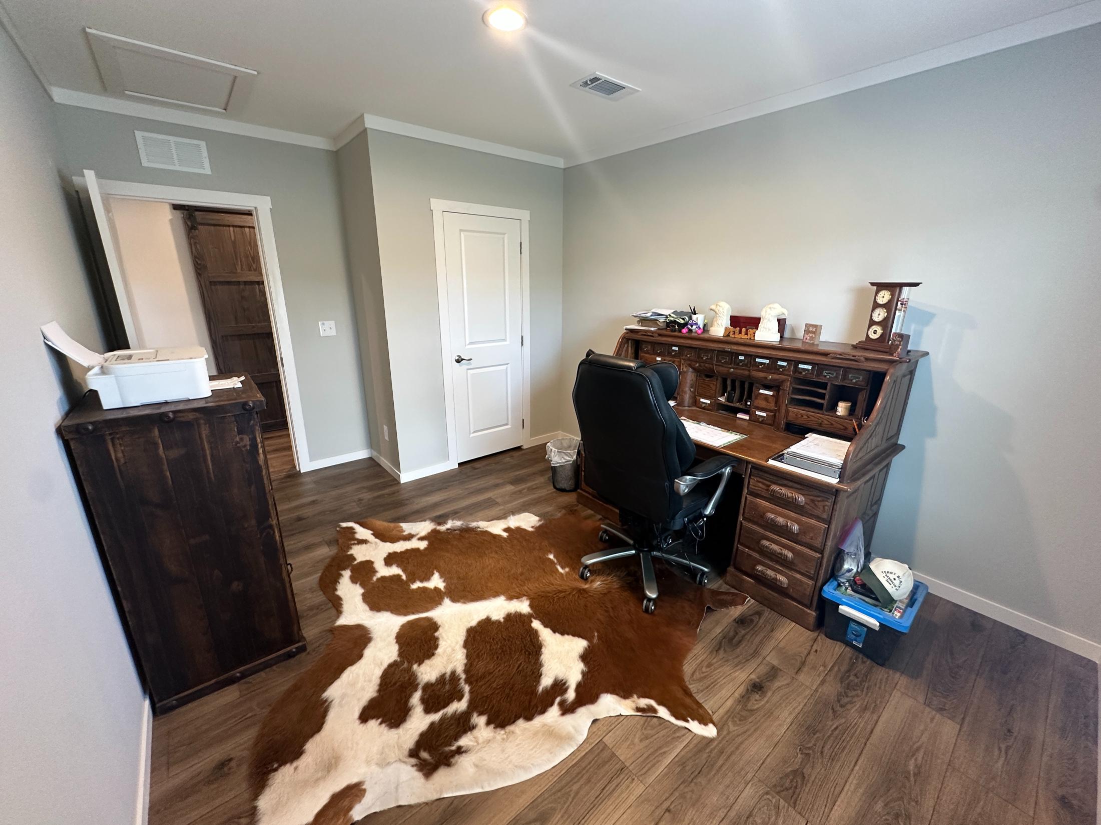 Located in the county yet serviced by city water and city sewer, this property offers the perfect blend of a peaceful country setting with the convenience of being just minutes from town. This spacious residence offers 4 bedrooms, 3 bathrooms, two living areas, and a large laundry room, providing ample room for family living and entertaining. The property is beautifully enhanced by mature, breathtaking live oak trees that create a peaceful, shaded setting throughout the backyard and surrounding grounds. Interior highlights include quartz countertops throughout, an electric range, and a built-in microwave, blending modern convenience with timeless appeal. Access to the home is convenient and well-maintained, with the private road built using approximately 17 loads of base, ensuring durability and year-round accessibility. In addition to city utilities, the property is equipped with Spectrum high-speed internet, offering dependable connectivity for work and daily living. Outdoors, the land is fully enclosed with net wire fencing topped with a strand of barbed wire and is divided into three cross-fenced pastures, making it ideal for livestock or agricultural use. A separate electric meter with camper hookup adds versatility for guests or recreational use. Additional improvements include a storage building for lawn equipment and tools, as well as a wooden back deck—perfect for relaxing or entertaining while enjoying the scenic views. The owner applied for an home & agricultural exemption in February 2026, helping establish future tax benefits. This property offers a rare combination of modern living, usable acreage, and natural beauty—delivering a true country feel while remaining conveniently close to town.